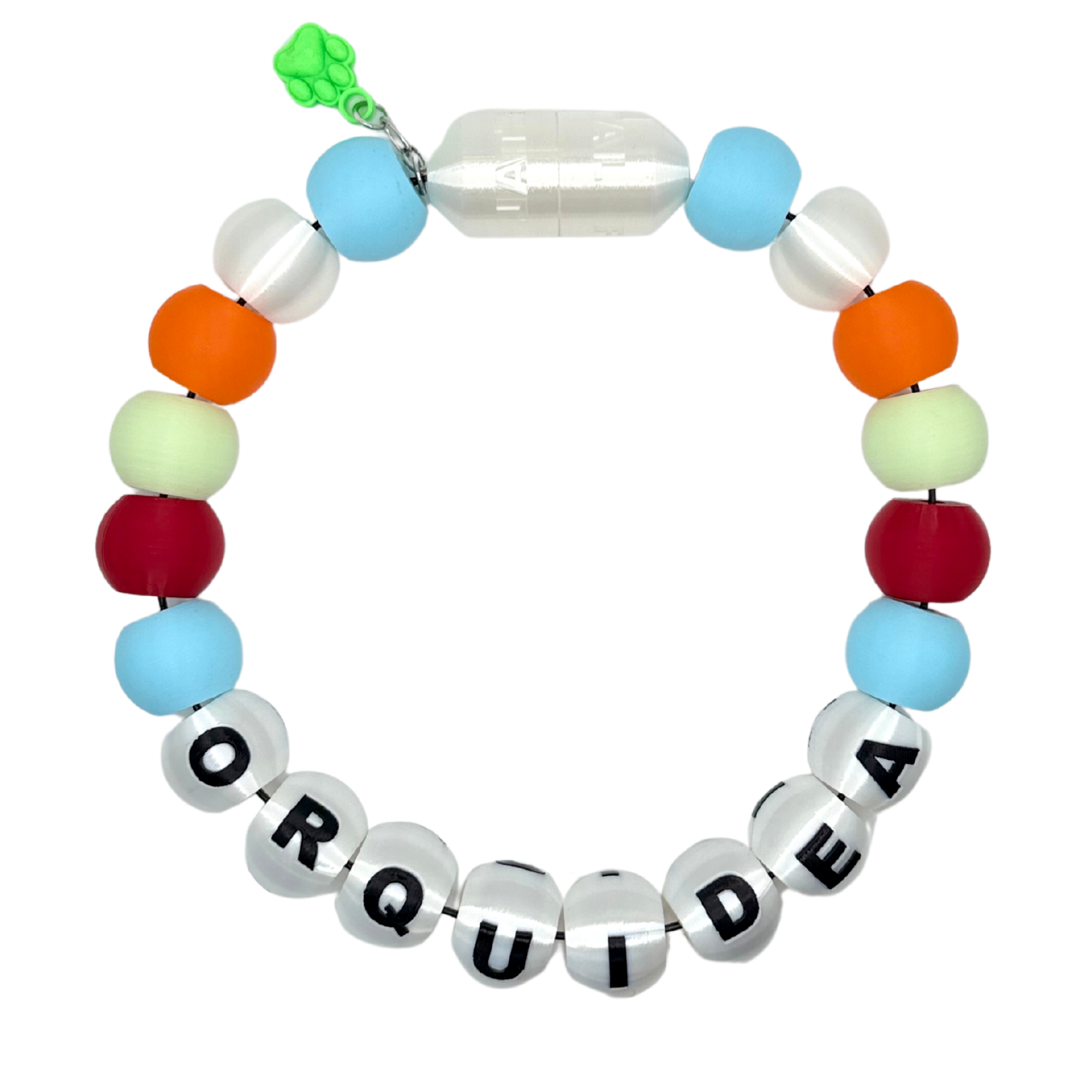 Accessories designed and manufactured exclusively with 3D printers, using polylactic acid, a bioplastic (made from corn, 100% recyclable and degradable under special conditions in large-scale composting plants).